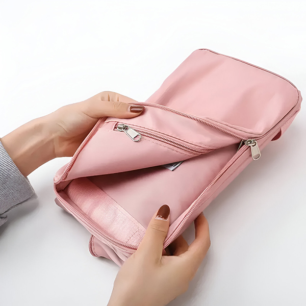 Puede ajustar la capacidad de la bolsa según sus necesidades gracias a la función de expansión oculta en la parte inferior de la cremallera. Basta con plegar o desplegar la bolsa según sea necesario.