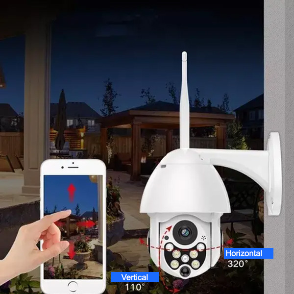 Permite una rotación horizontal de 320° y vertical de 110°, lo que cubre todas las áreas. El zoom digital de 4 aumentos le permite ampliar la imagen para ver de cerca objetos lejanos o alejarla para obtener una vista más amplia de los alrededores.