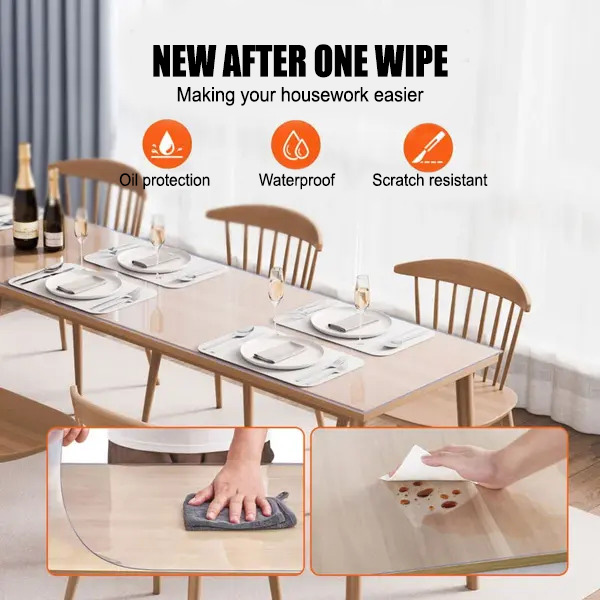 Renueva tu espacio de comedor con nuestra cubierta de mesa de PVC premium. Diseñada para mantener tu mesa en perfectas condiciones, ofrece una protección excepcional contra arañazos, derrames y más.