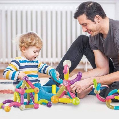 El juguete SUPERBLOCK consta de palos y bolas magnéticos de colores que fomentan en los niños una serie de habilidades de pensamiento, la capacidad de resolver problemas, el pensamiento simbólico y la percepción de los colores. Este kit de juguetes magnéticos fomenta el pensamiento espacial, mejora la coordinación mano-ojo y ofrece a los niños la libertad de construir distintas formas como coches, animales, casas o cualquier cosa que despierte su imaginación e interés.