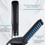 - Fácil de usar: aislante térmico antideslizante, cómodo de sostener en la mano. El cepillo para alisar barbas actúa como una cubierta protectora para la placa calefactora, lo que evita quemaduras excesivas en el cabello.